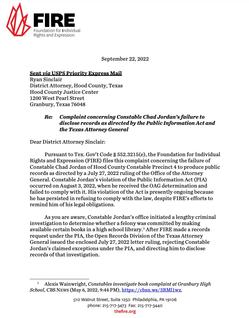 FIRE on Twitter: quot Today FIRE lodged a formal complaint with the Hood