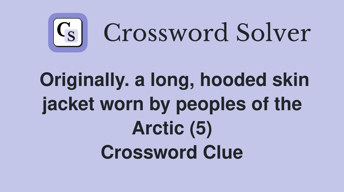 Originally a long hooded skin jacket worn by peoples of the Arctic (5