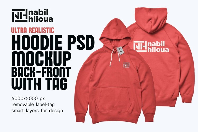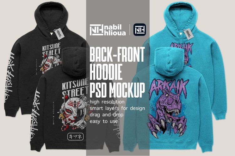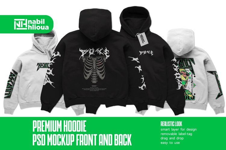 premium realistic back and front Hoodie PSD Mockup template