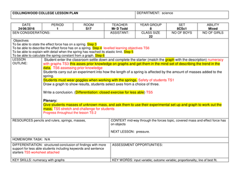 Hookes law KS3 worksheet Physics teaching resources Teachit