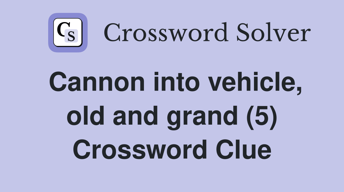 Cannon into vehicle old and grand (5) Crossword Clue Answers