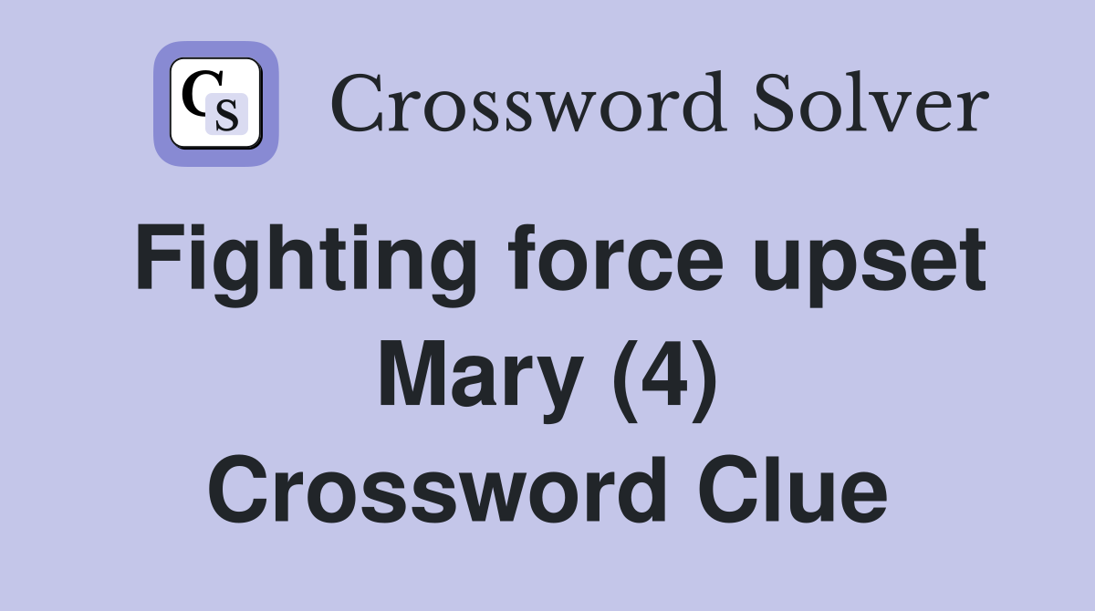 Fighting force upset Mary (4) Crossword Clue Answers Crossword Solver