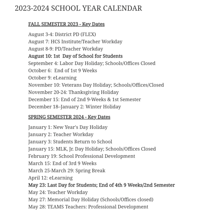 Hoover City Schools Calendar 2023 2024 (Holiday Breaks)