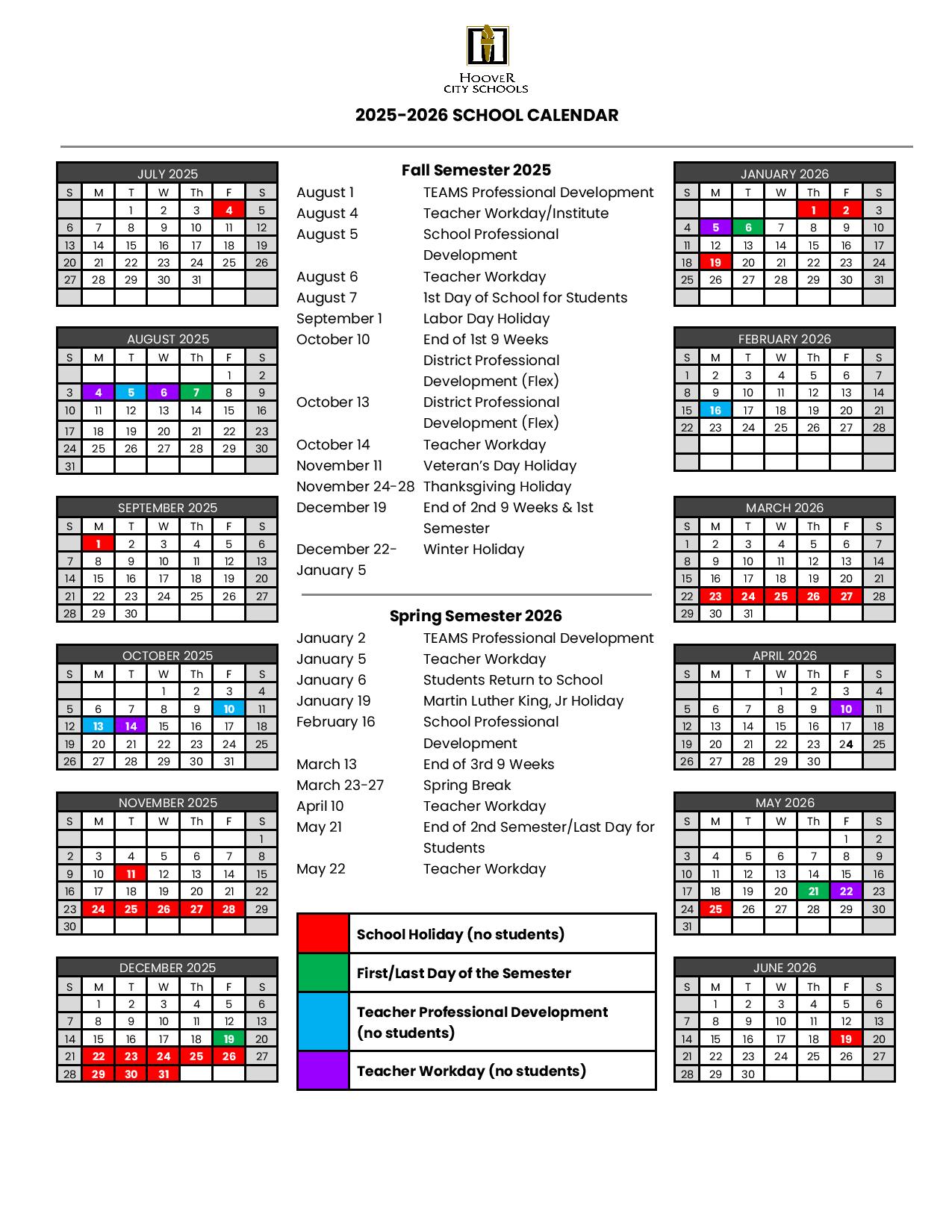 Hoover City Schools Calendar 2025 2026: Key Dates Holidays Bham Now
