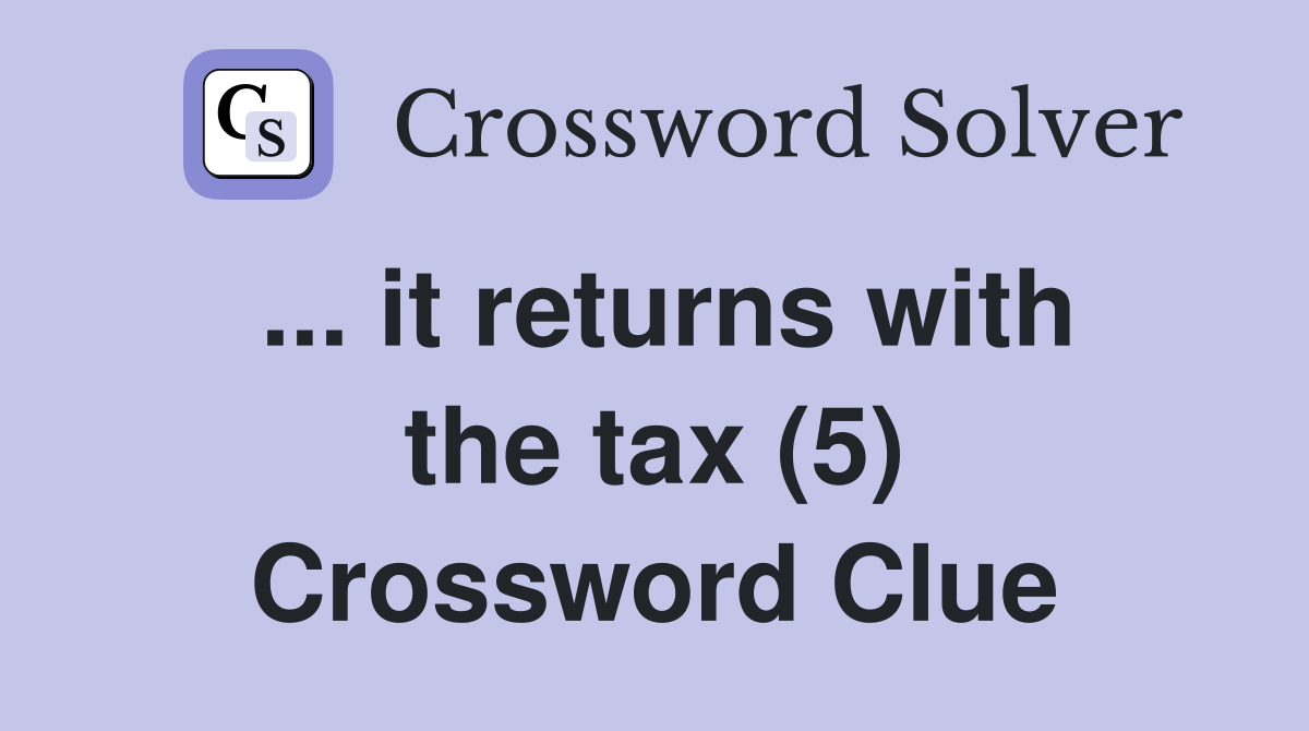 it returns with the tax (5) Crossword Clue Answers Crossword Solver