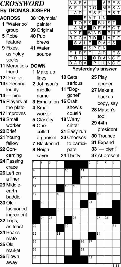 Crossword for January 11th Crosswords themountainmail com
