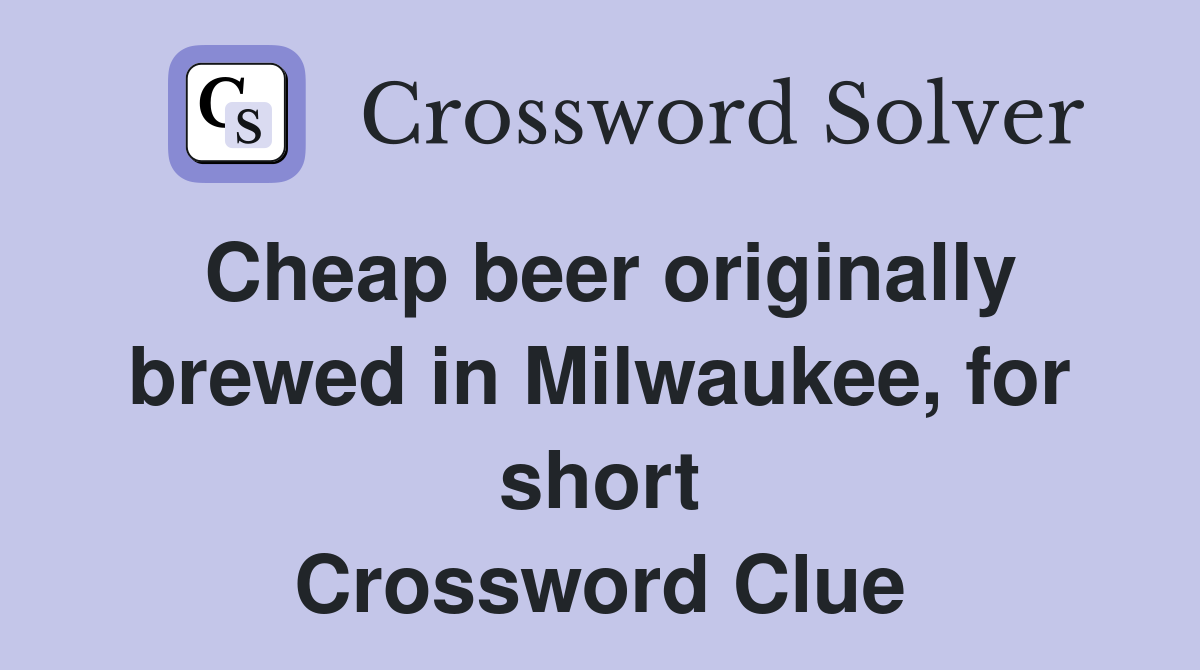 Cheap beer originally brewed in Milwaukee for short Crossword Clue
