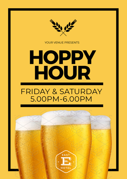 Hoppy Happy Hour Drink Design with glasses of beer Easil