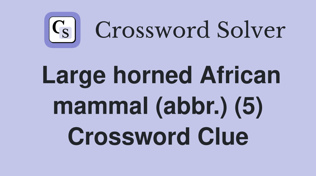 Large horned African mammal (abbr ) (5) Crossword Clue Answers