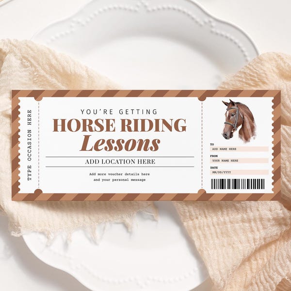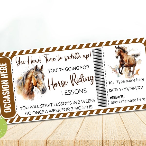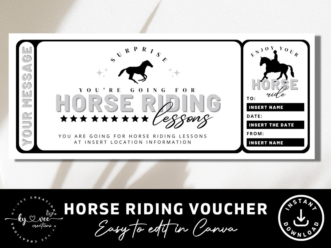Horse Riding Lessons Gift Voucher Editable Template Surprise Horseback