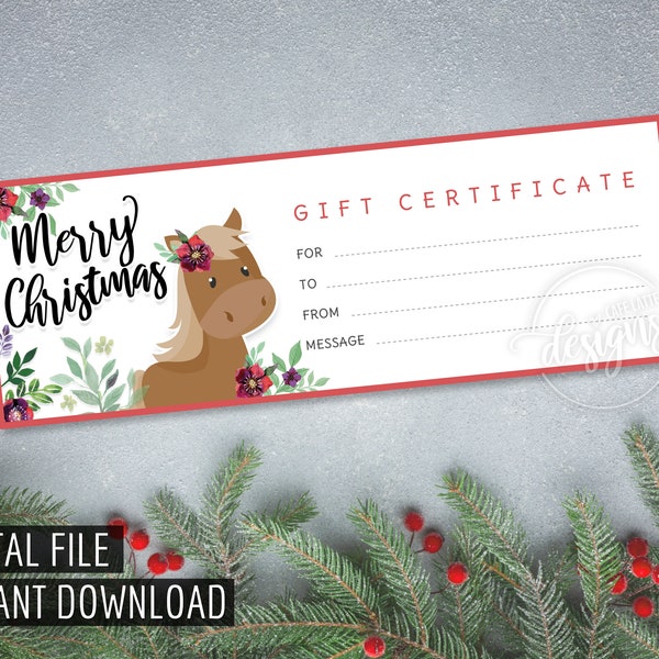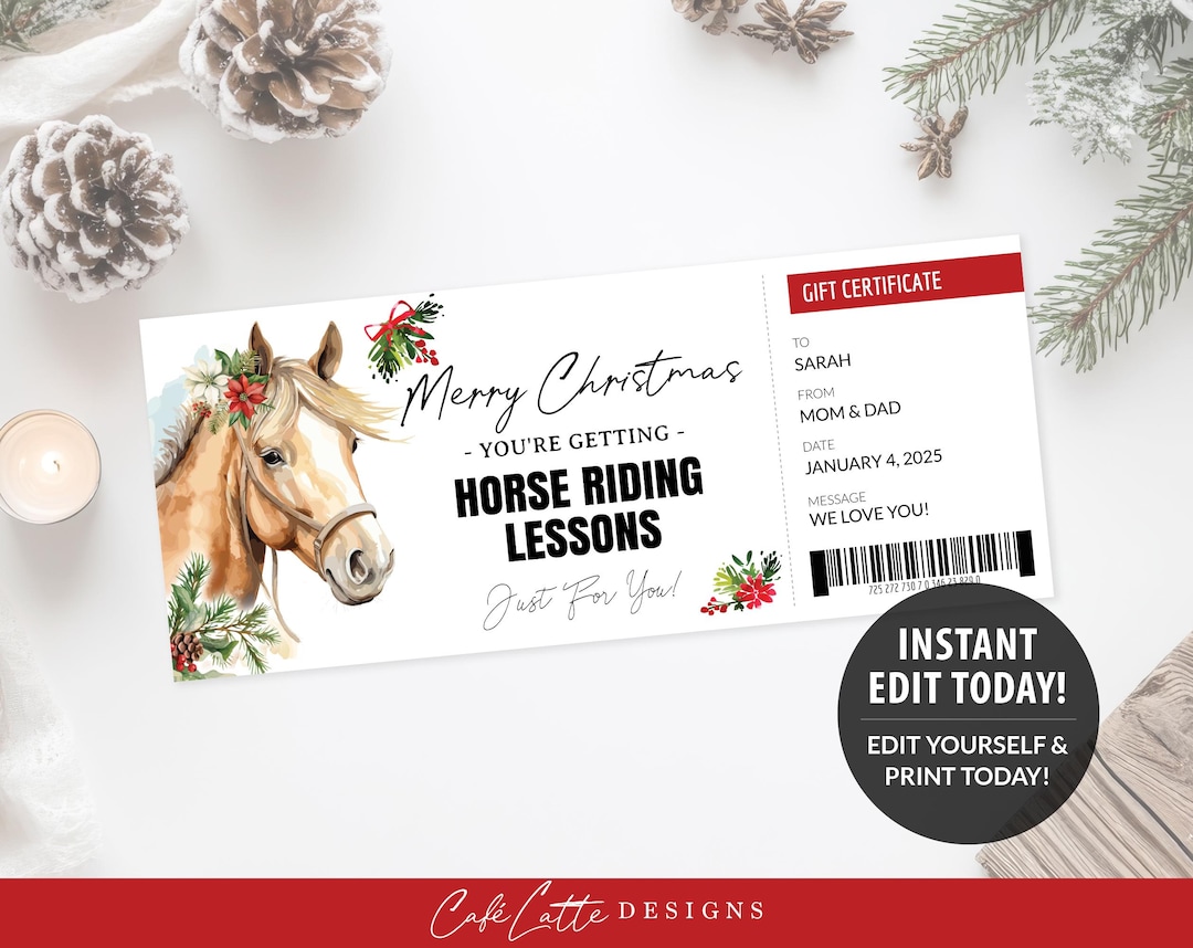 Christmas Gift Certificate Horse Riding Lessons Printable Horseback