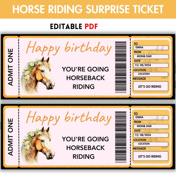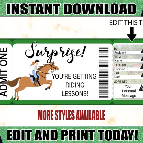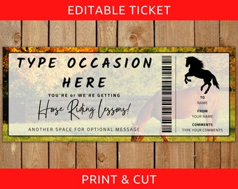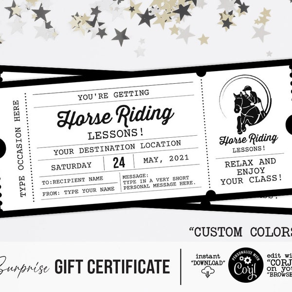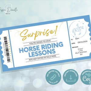 Horseback Riding Gift Certificate Ticket Printable Surprise Etsy