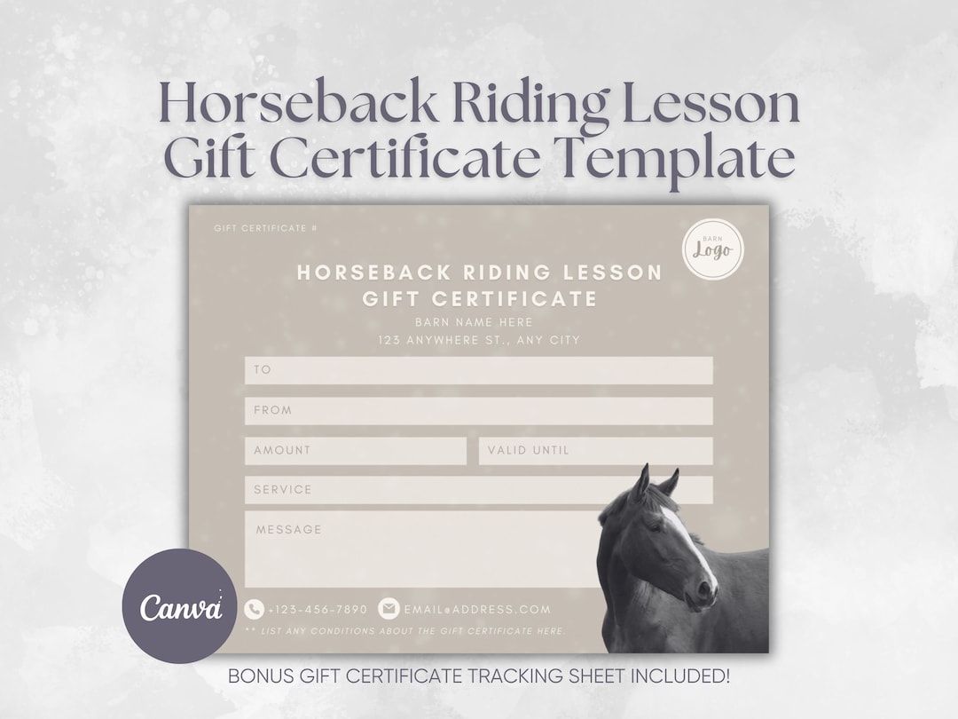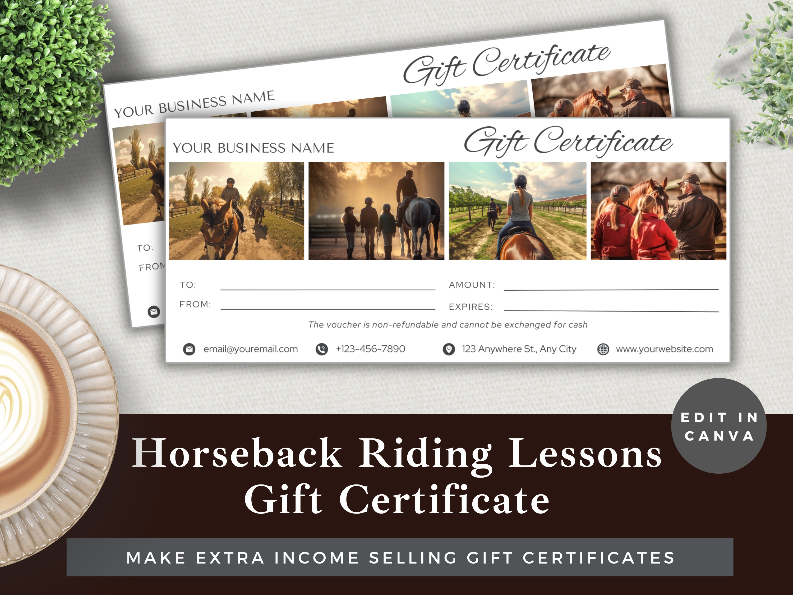 Horseback Riding Lesson Gift Certificate Customizable Canva Template