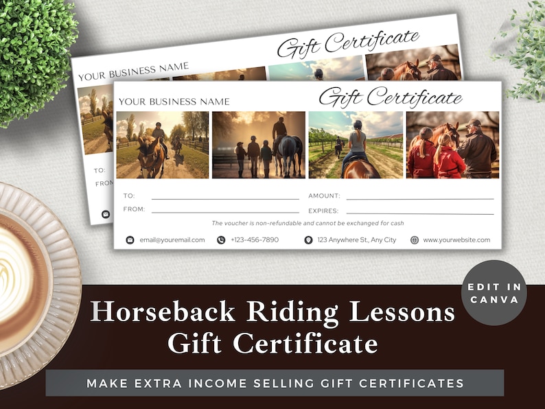 Editable Gift Certificate Horse Riding Edit Template in Canva