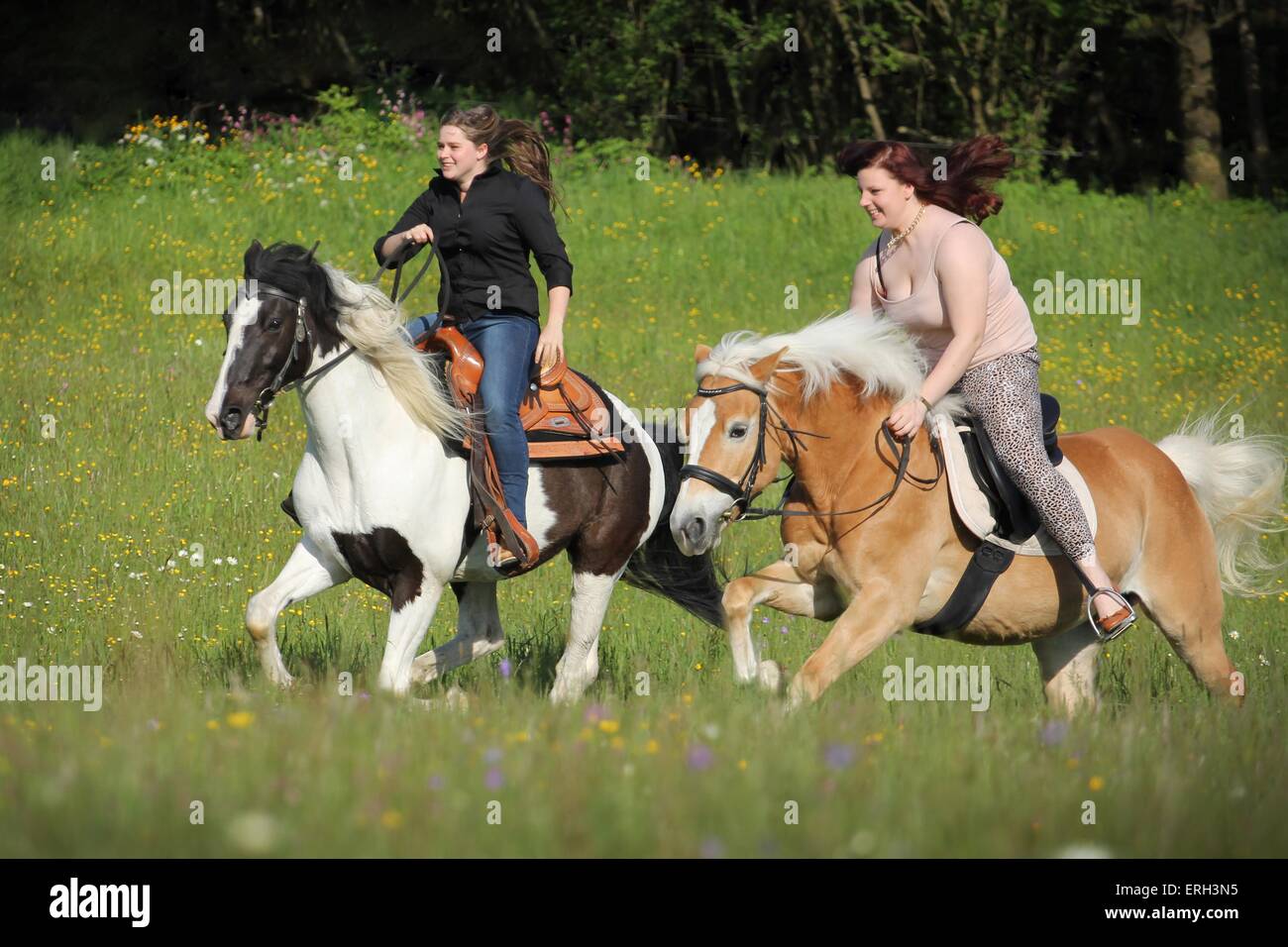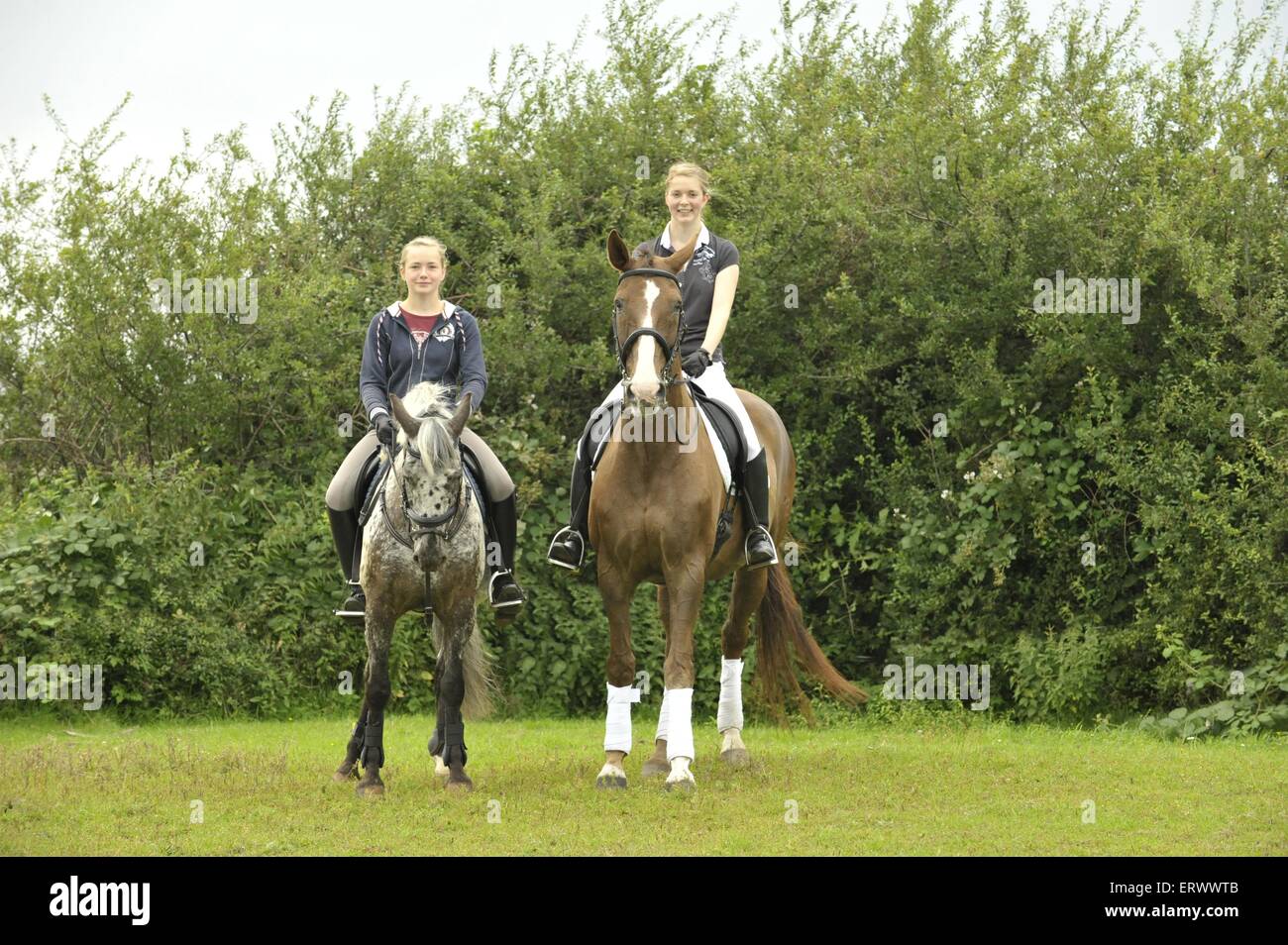 Two Horses and Riders Stock Photo Alamy