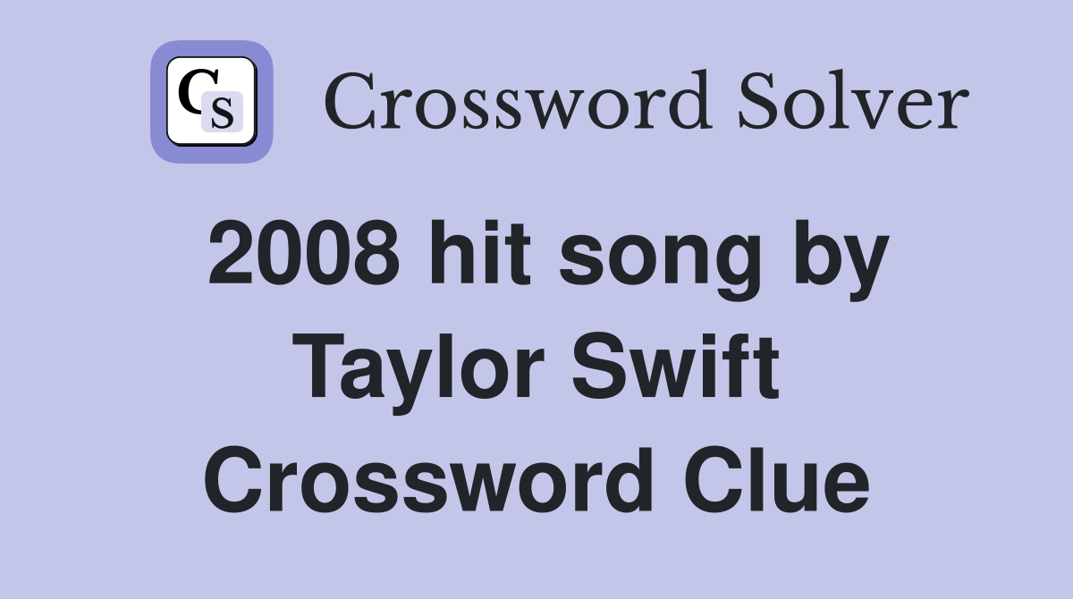 2008 hit song by Taylor Swift Crossword Clue Answers Crossword Solver