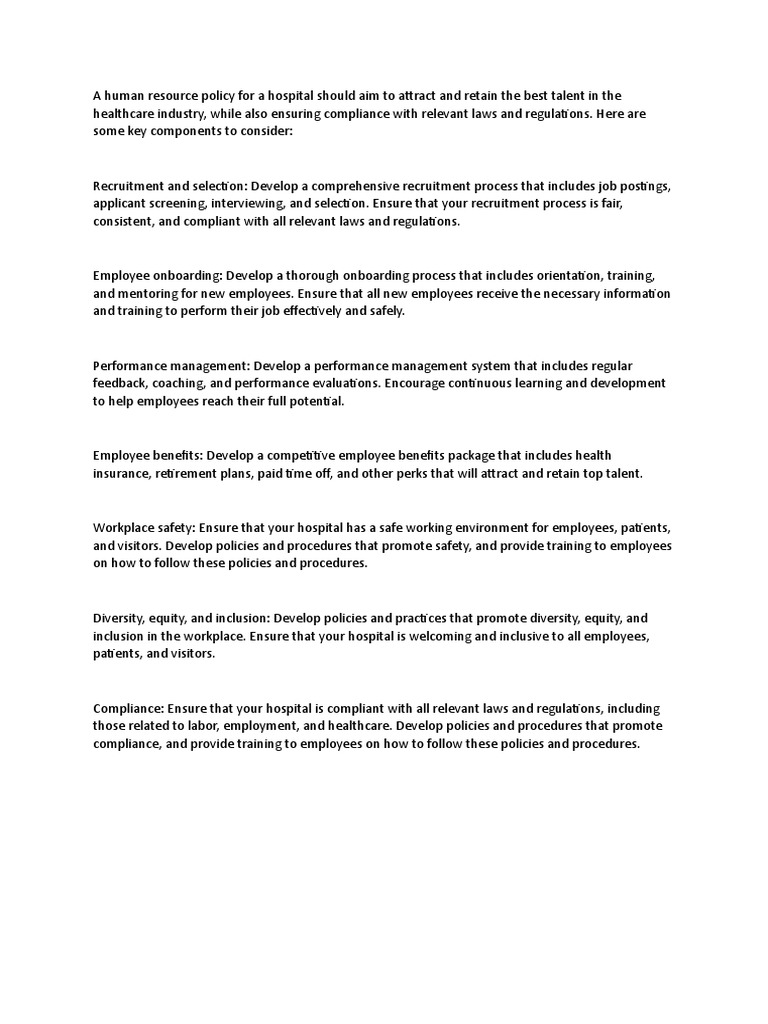 Human Resource Policy For Hospital PDF