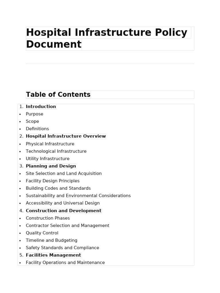 Hospital Infrastructure Policy Document PDF Electronic Health