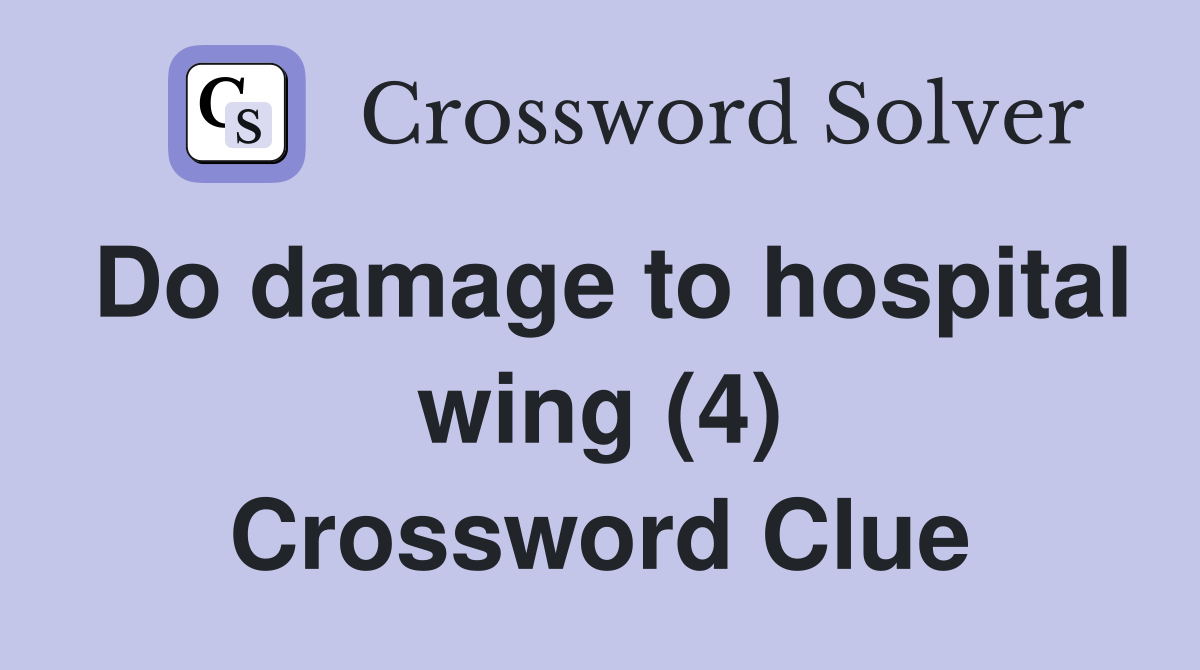 Do damage to hospital wing (4) Crossword Clue Answers Crossword Solver
