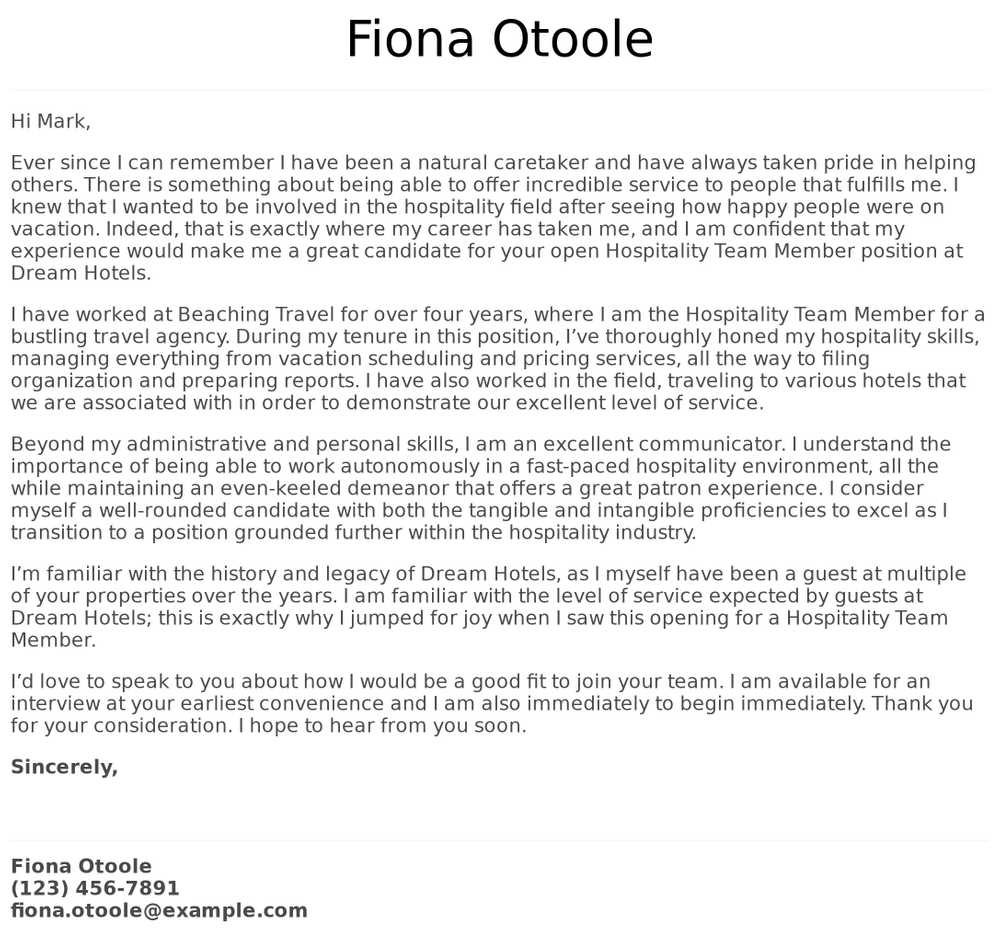 Fabulous Info About Cover Letter Template Hospitality Resume Objective