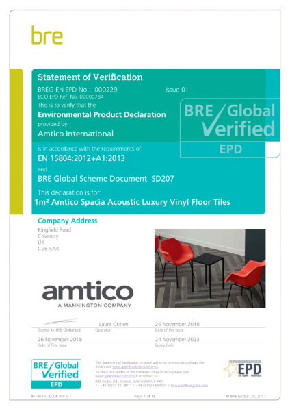 Spacia Acoustic LVT EPD Amtico International NBS Source