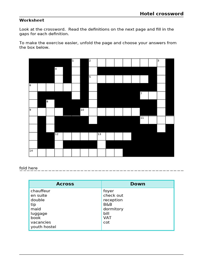 Hotel Crossword Puzzle Guide PDF Hotel Hostel