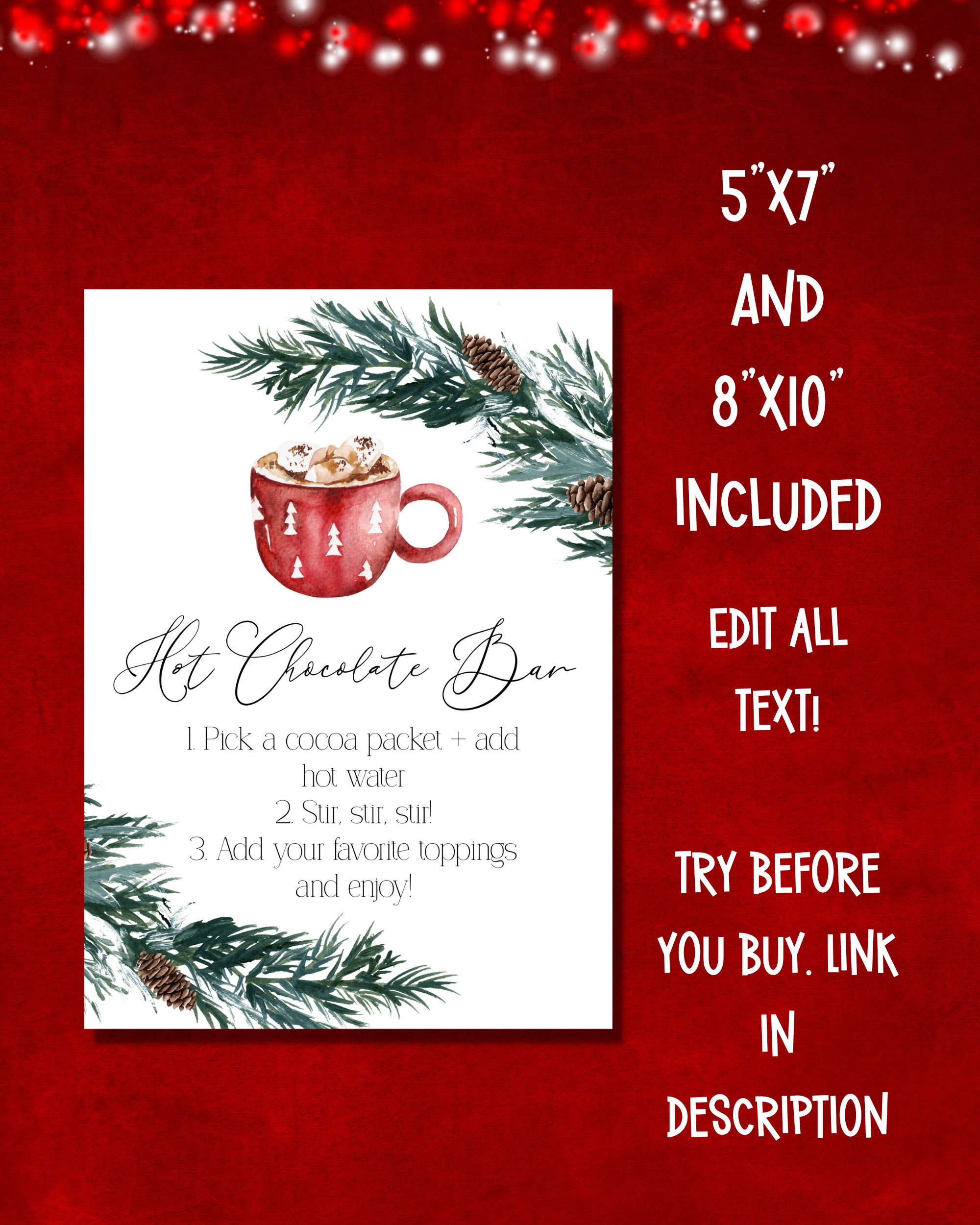 Hot Chocolate Bar Sign Printable Sign Editable Template 5x7 and 8x10