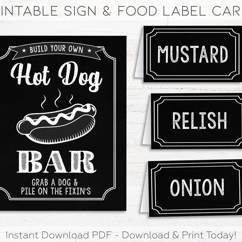 DIY HOT DOG BAR Setup Hot Dog Sign Hot Dog Labels 4th of July