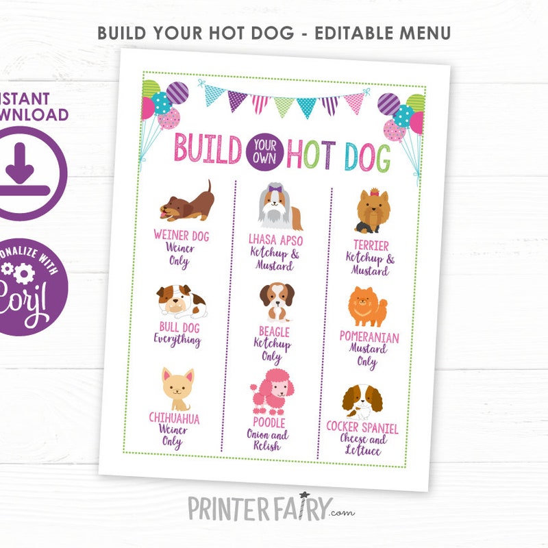 Hot Dog Bar Printables Etsy