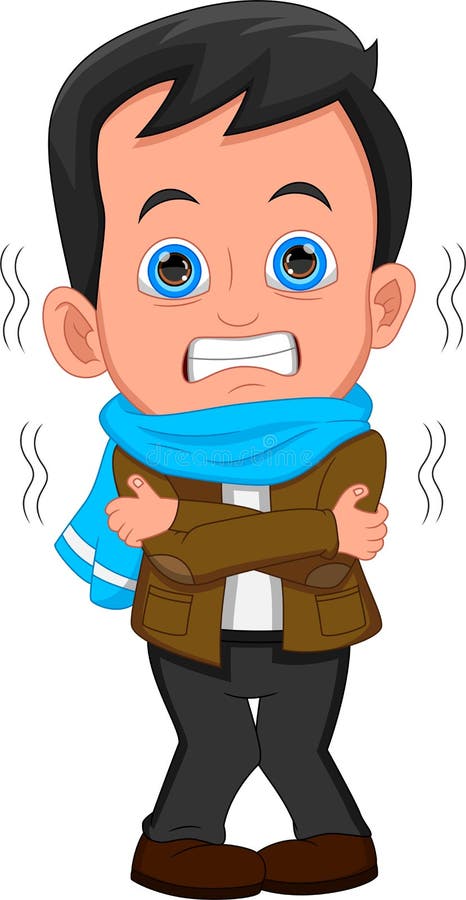 Cute Style Boy in Winter Clothes Shivering Cartoon Illustration Stock