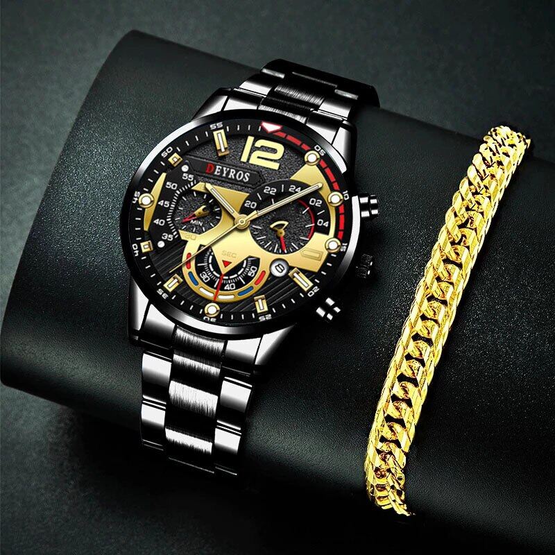 (HOT)Brand Mens Sports Watches Fashion Men Stainless Steel Quartz