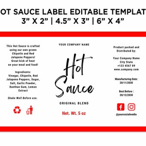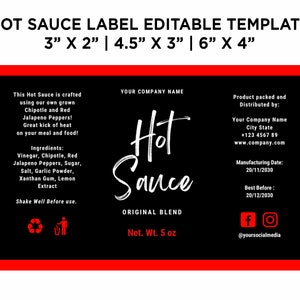 Editable Hot Sauce Label Template: 2x2 3x3 Sizes (instant Download