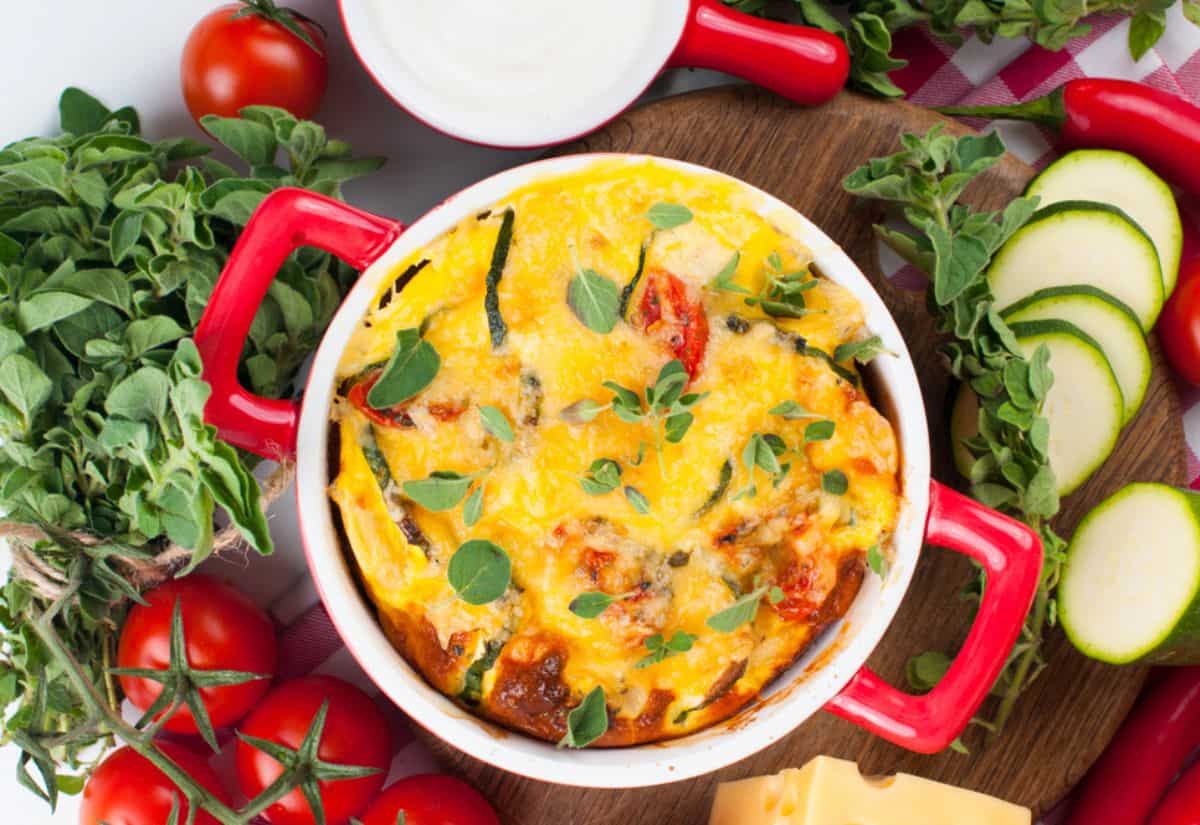 Vegetable Frittata with Broccoli Red Bell Pepper and Red Onion in Cast