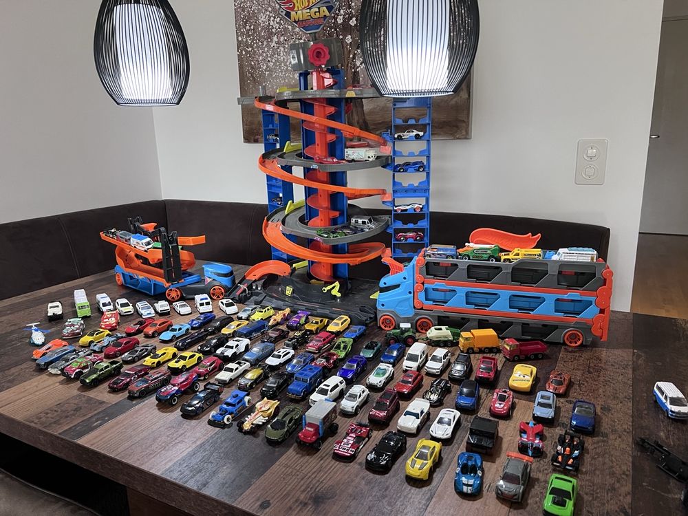 Hot Wheels Mega Garage 2 Transporters vielen Autos (Gebraucht) in