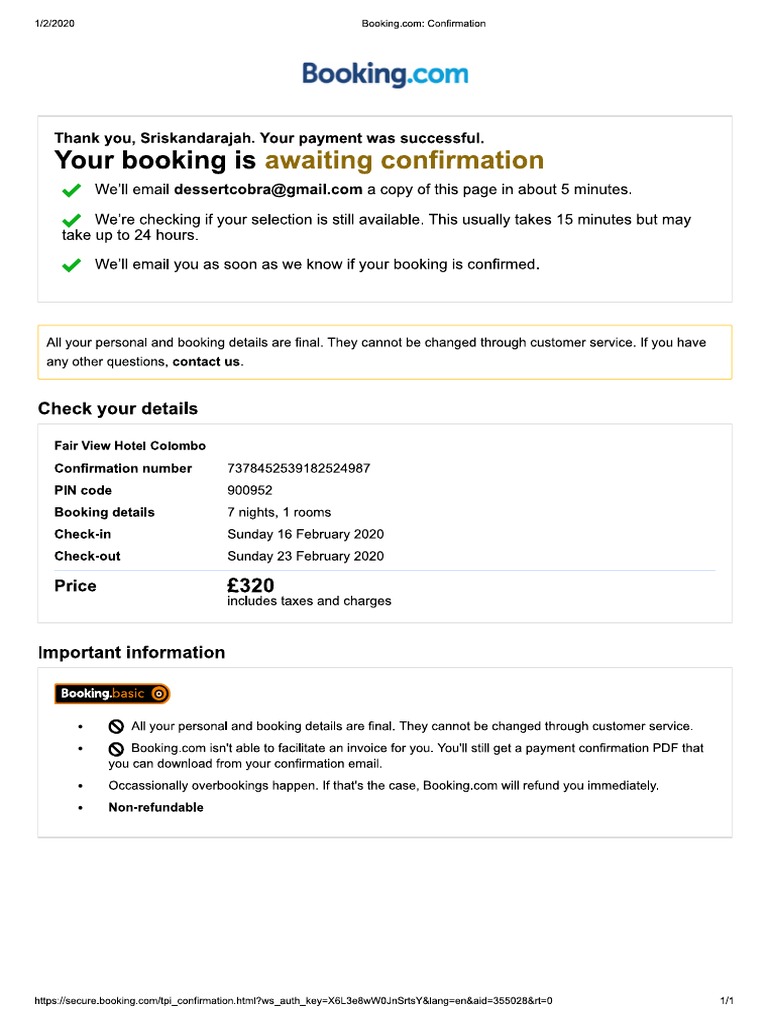 Hotel Booking Confirmation PDF PDF