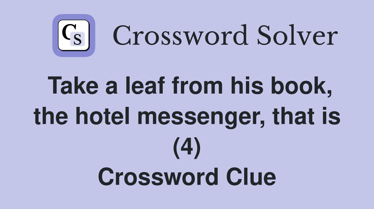 Take a leaf from his book the hotel messenger that is (4) Crossword