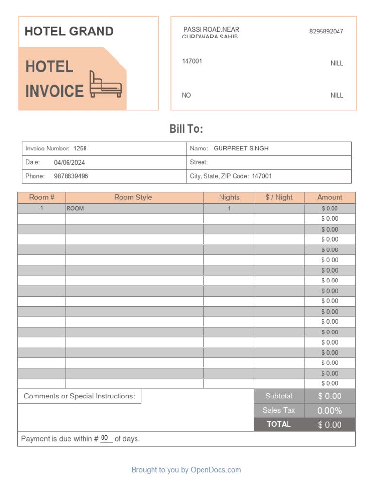 Hotel Invoice Template 2024 PDF Punjab Indian Religions