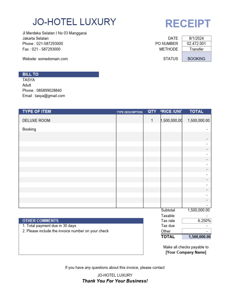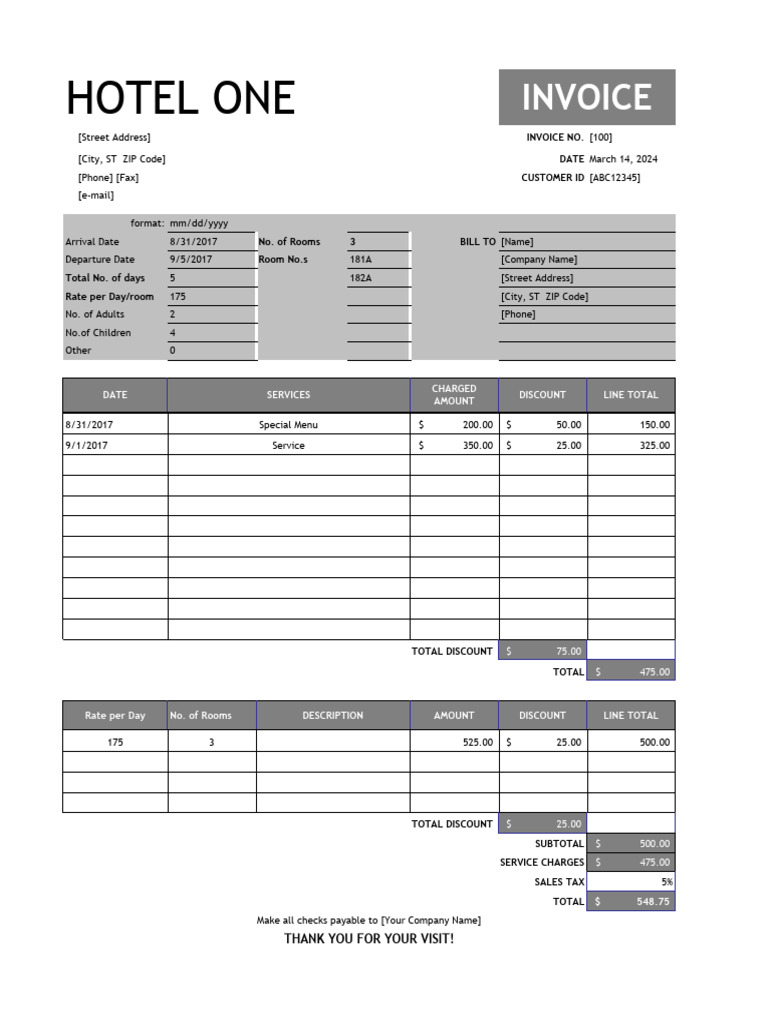 Hotel Invoice Template in Google Sheets Excel Download Template net