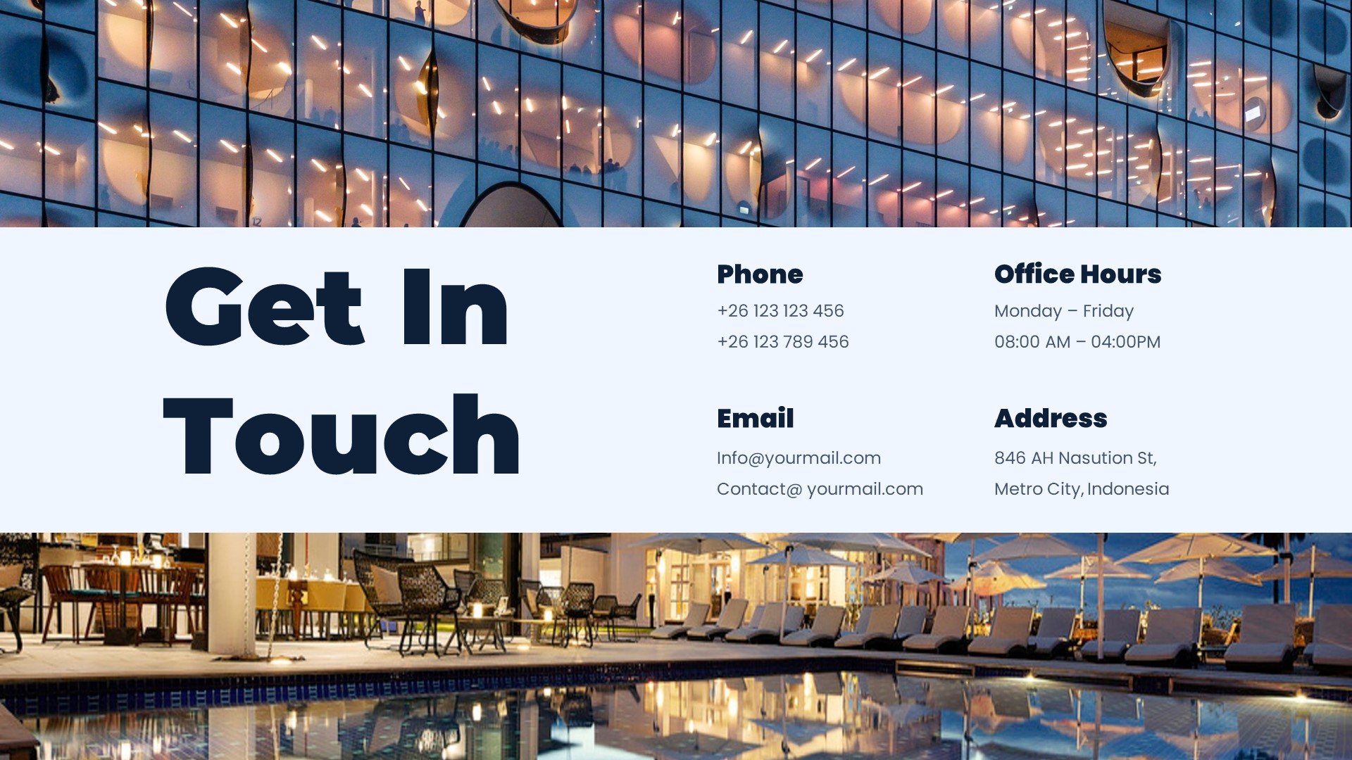 Get In Touch Slide From Luxury Hotel Accommodation Presentation