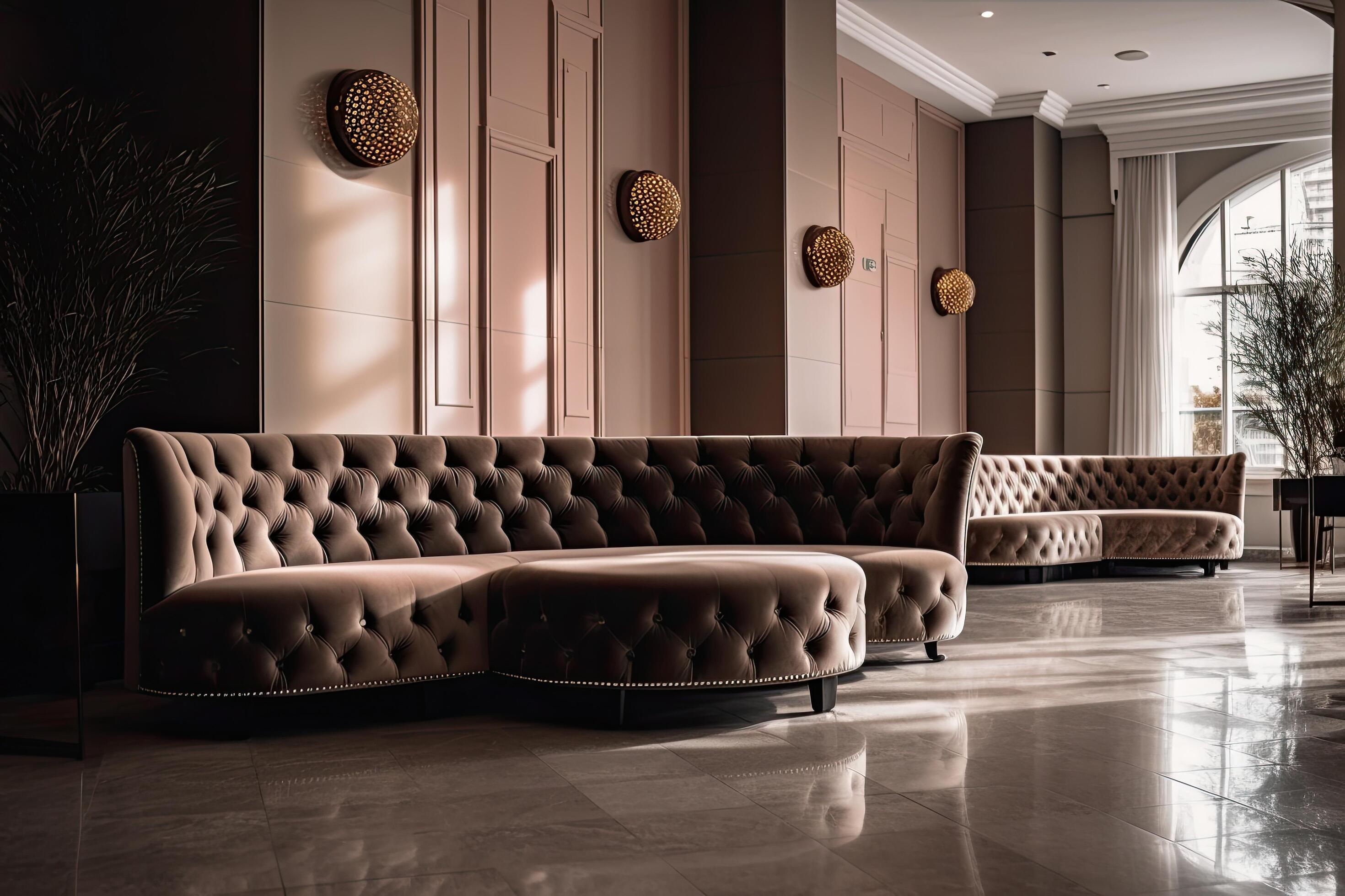 Luxury hotel lobby interior with leather sofas and armchairs A