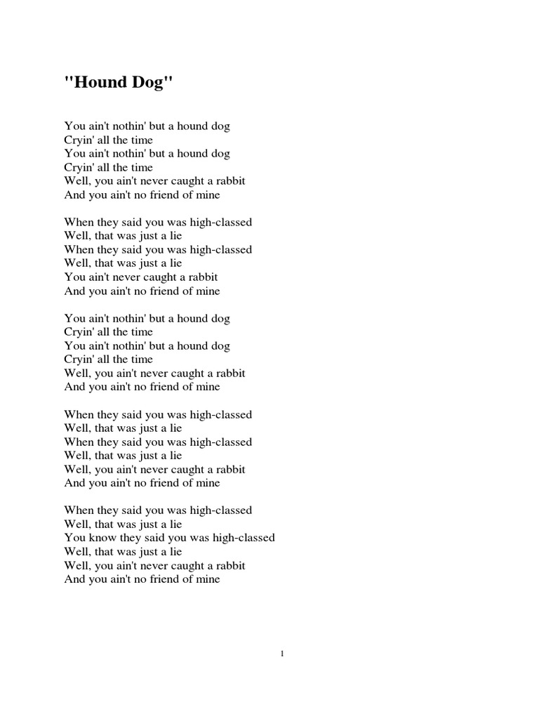 Country Music:Hound Dog Elvis Presley Lyrics and Chords