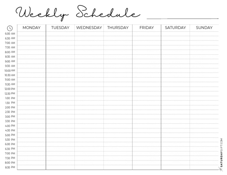Weekly Hourly Planner Templates From 6 Am to 9 Pm SaturdayGift PDF
