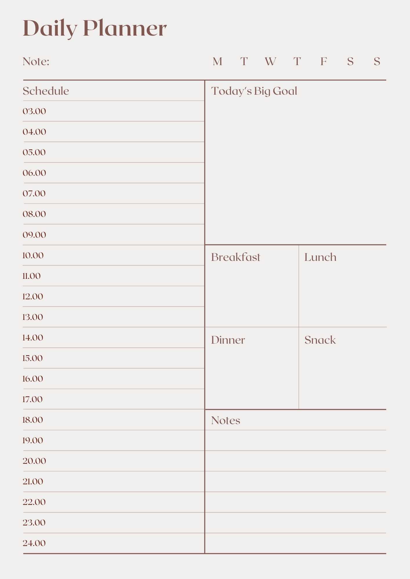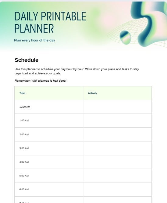 Hourly Daily Planner Printable
