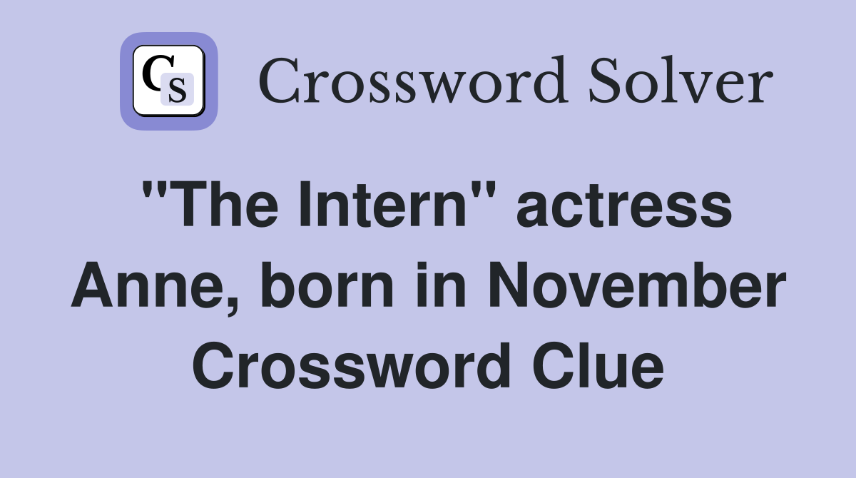 quot The Intern quot actress Anne born in November Crossword Clue Answers
