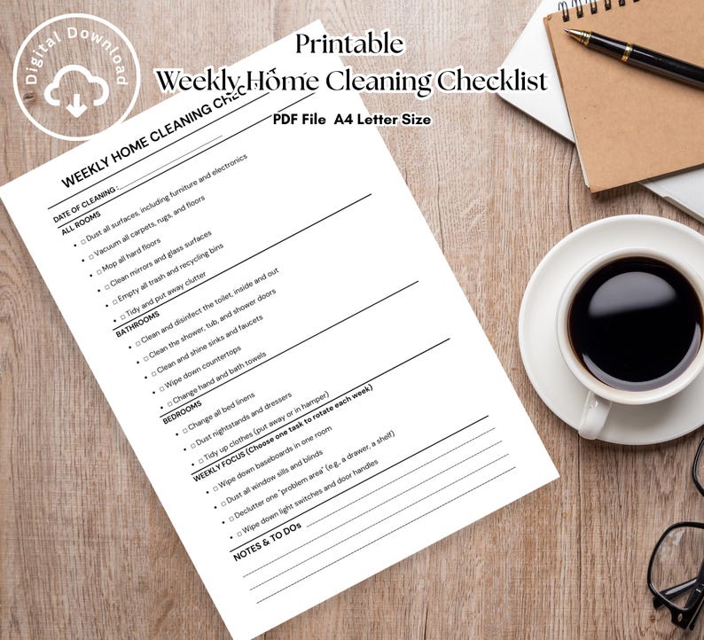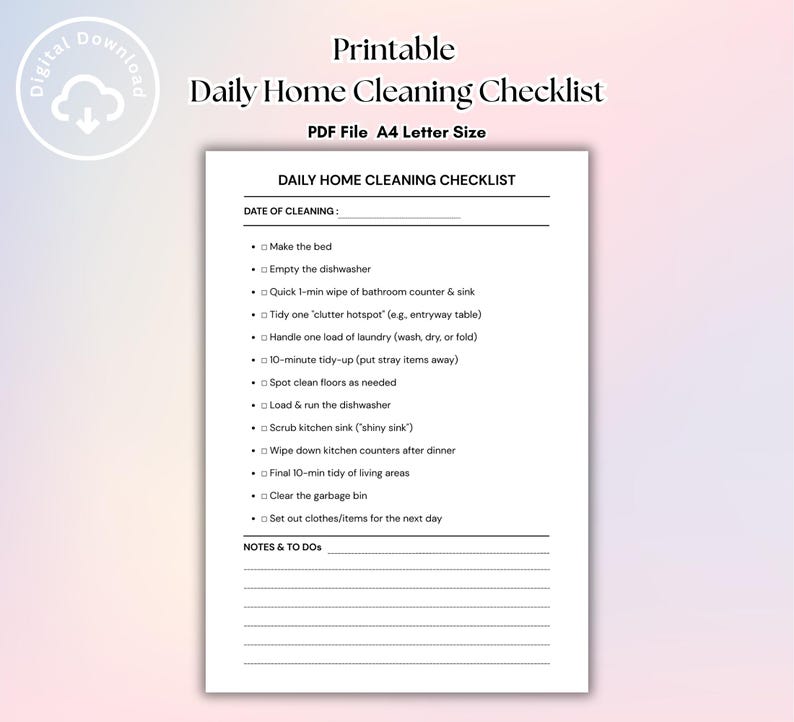 Printable Daily Weekly Home House Cleaning Checklist PDF A4 Letter