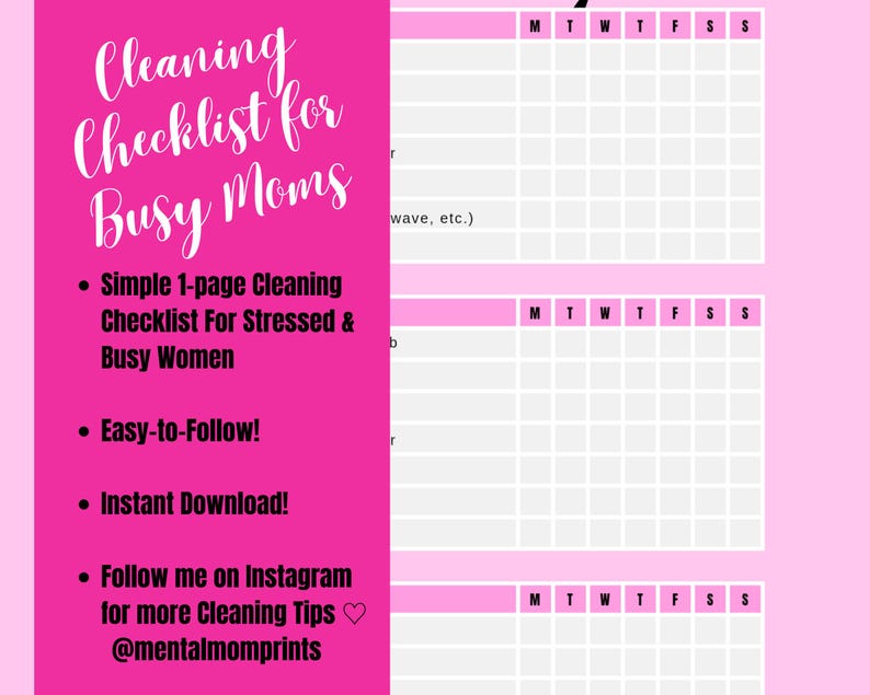 ADHD Cleaning Checklist PDF Template for Busy Single Moms Minimalist