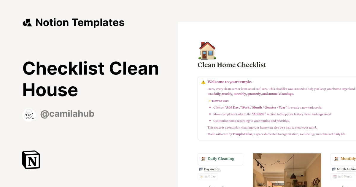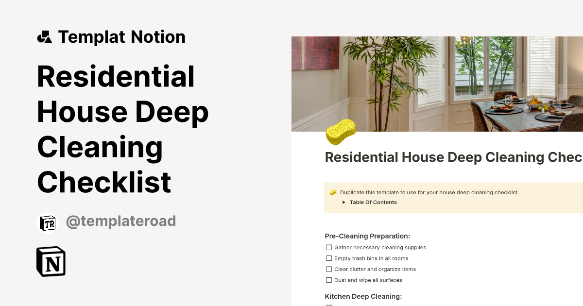 Templat Residential House Deep Cleaning Checklist Notion Marketplace
