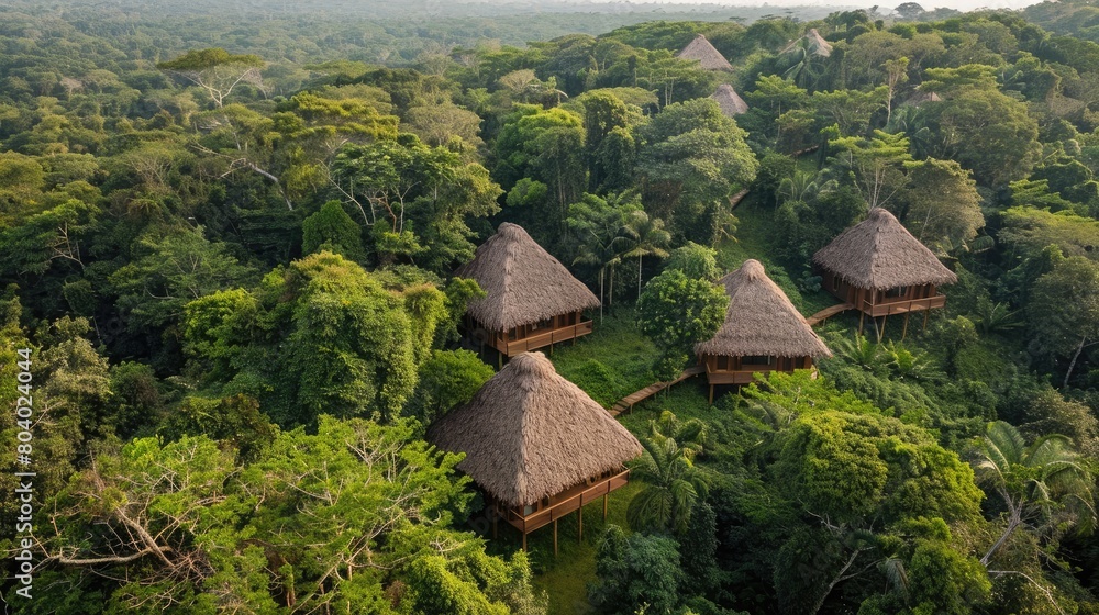 Glamping Accommodation Amazon Rainforest Wooden Treehouse Stock Photo