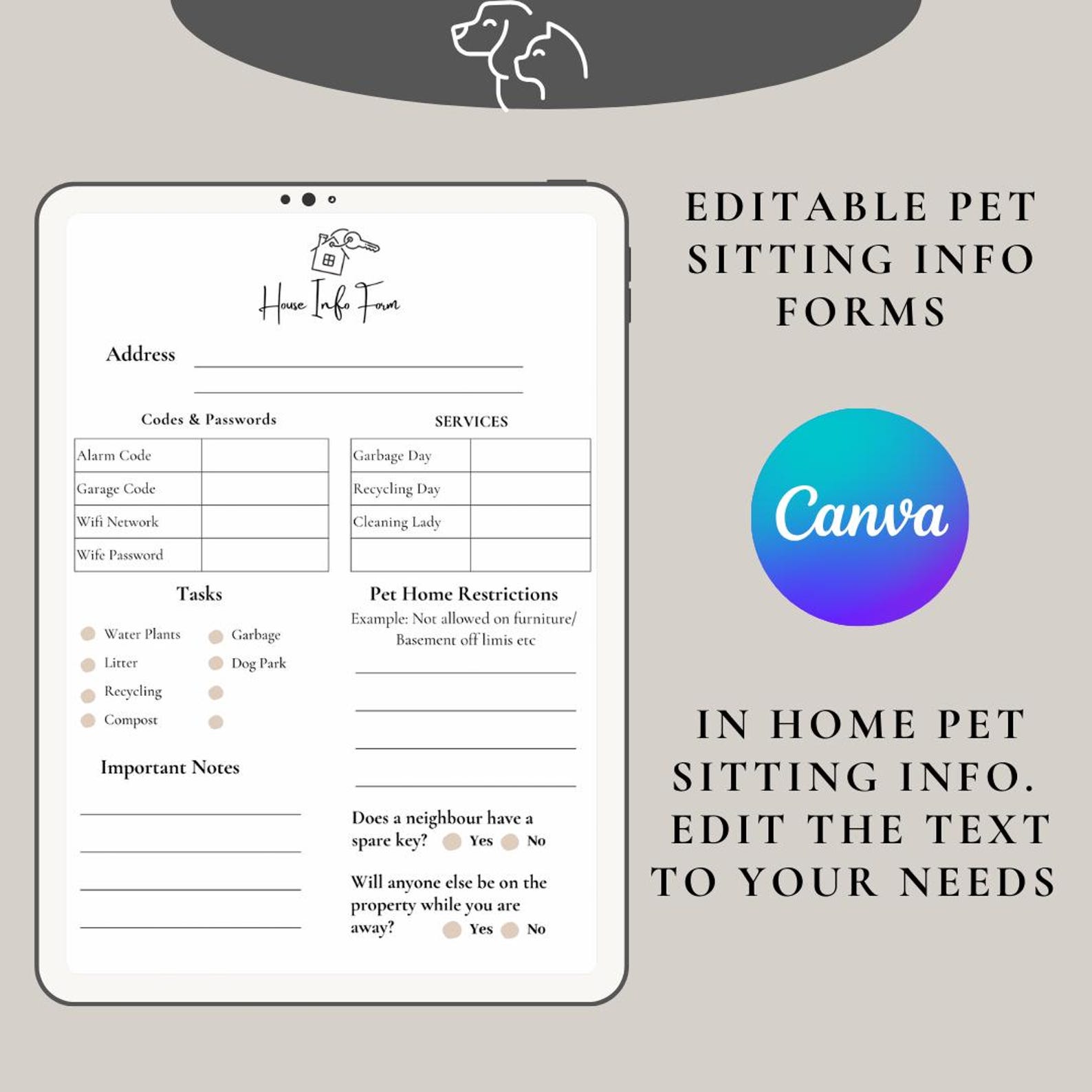 Editable Pet Sitter Forms Bundle House Pet and Personal Info