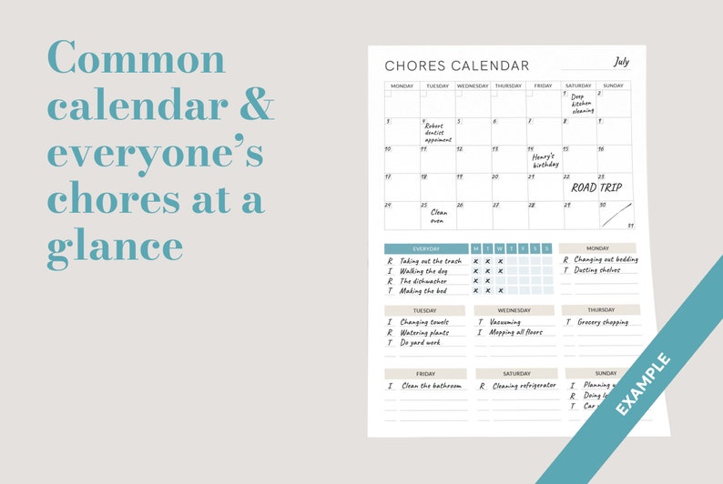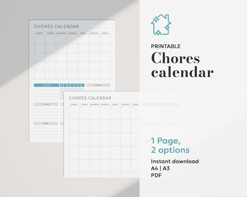 Monthly Calendar Household Chores Chore schedule Weekly chores Chores